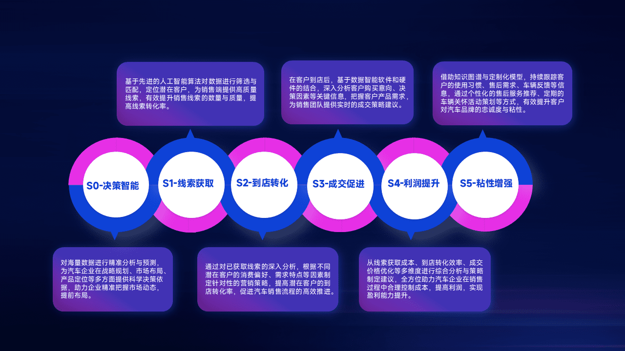 通过拓宽潜在客户来源、、、、优化线索分配并提高到店转化率,,以增强销售效率。。。同时,,,,利用线索数据不断优化分析模型,,有效提升转化率,,,扩大营销影响力。。。